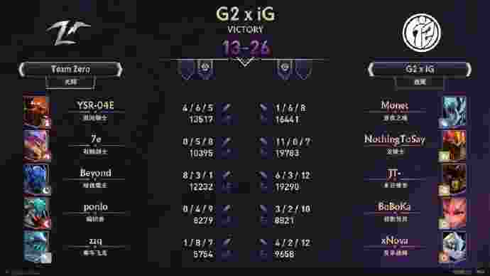 25分钟,iG顺势上高推掉中下两路兵营。27分钟,TZ开雾拼死一搏,但混沌正面刚不过龙骑被击杀,TZ敲出GG,iG扳回一城。