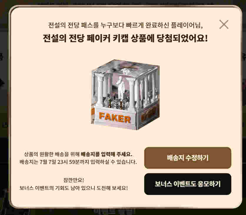 6月13日,Faker名人堂传奇皮肤礼包在全球服务器上线,韩服针对该活动设置了实体奖励,购买签名版礼包或者将通行证打满100级可以申请实力礼物: