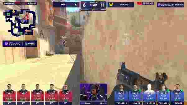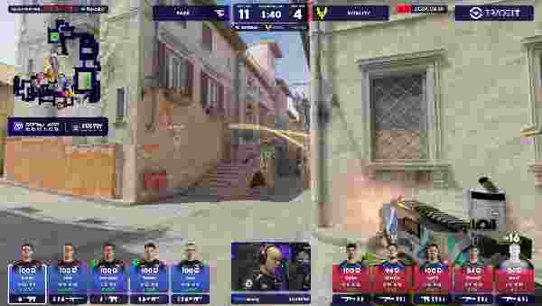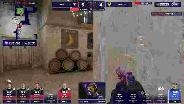 下半场FaZe来到进攻方,手枪局夹B战术,broky双杀打开突破,占领包点后稳稳架枪赢下胜利。次回合Vitality选择强起,面对FaZe的夹A战术率先打出优势,但是马上又被rain与ropz找回场子,输掉强起局后Vitality只能选择纯e。