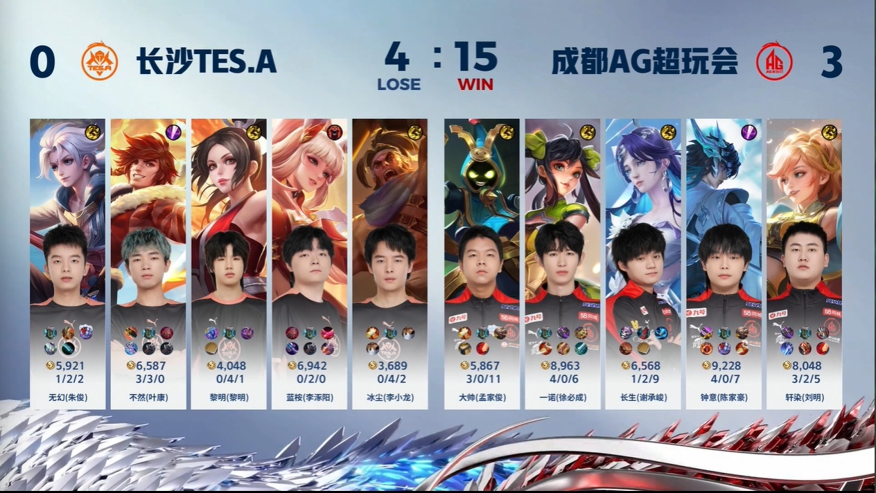 【成都AG超玩会 3:0 长沙TES.A】成都AG超玩会 拿下第三局比赛!