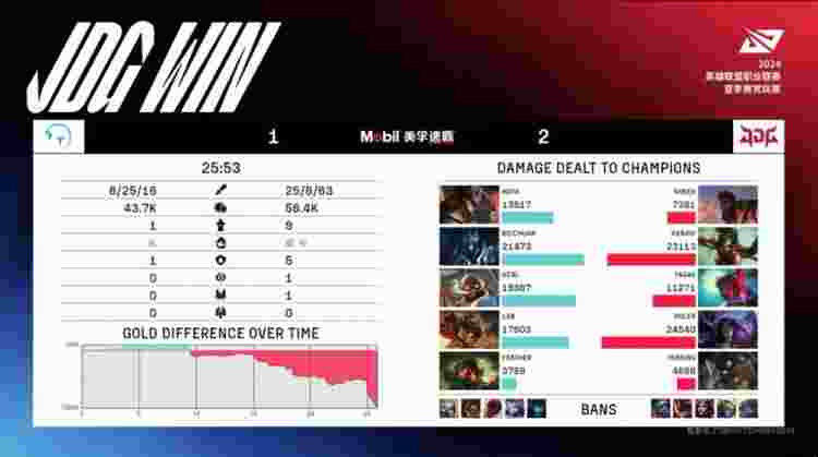 【25:18】永恩下路被抓1V4反杀卡牌,卡莎W看到野区的霞直接飞脸将其融化,TT打出1换5推掉JDG下路二塔随后转中推掉JDG二塔,经济领先5k。