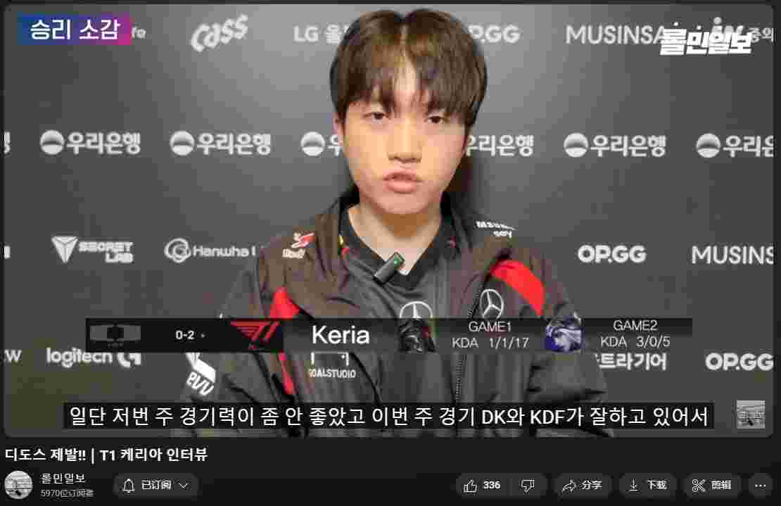 6月19日,韩媒国民日报发布了对T1辅助选手Keria的视频采访: