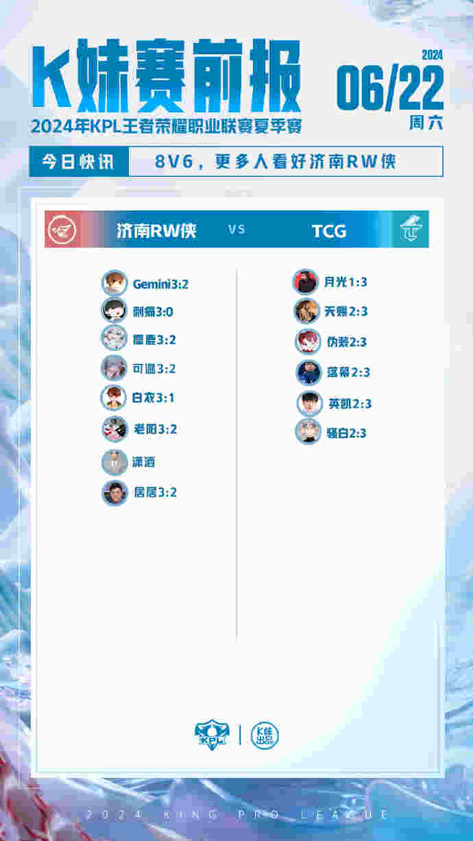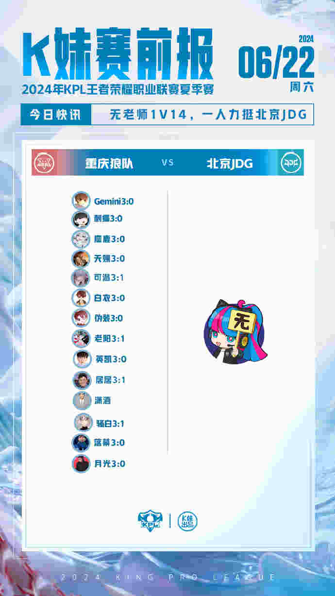 6月22日,KPL官博发布了2024KPL夏季赛常规赛第一轮W2D4的K妹赛前报,内容如下: