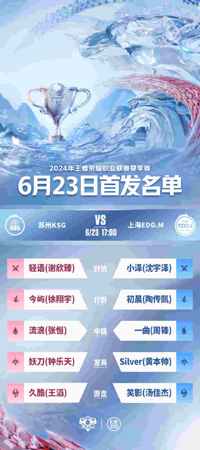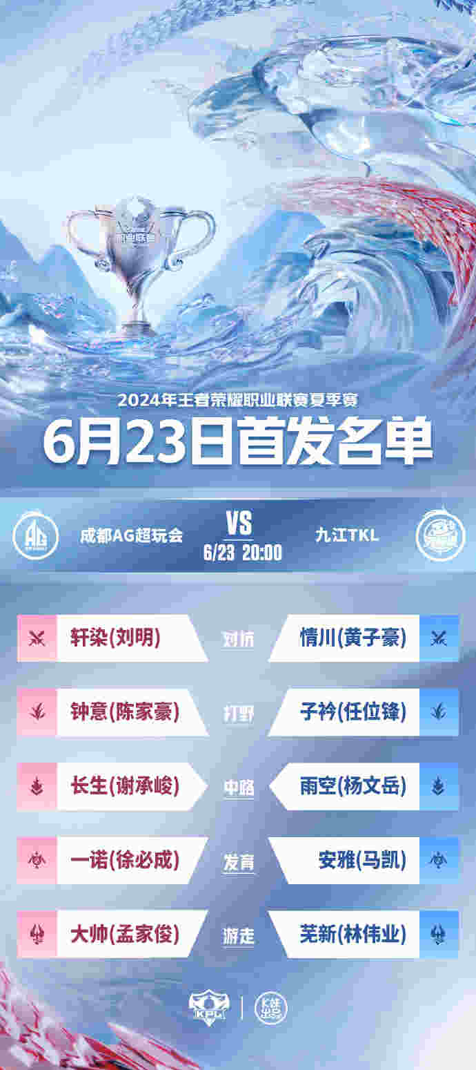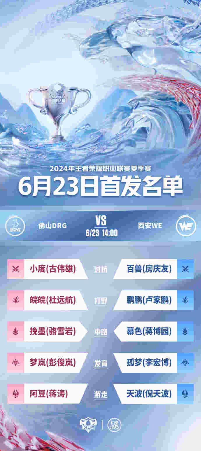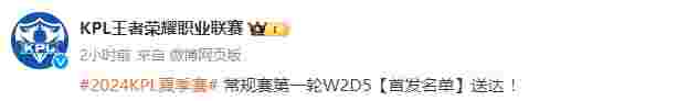 6月23日,KPL官方微博发布了2024KPL夏季赛常规赛第二周第五日首发名单:
