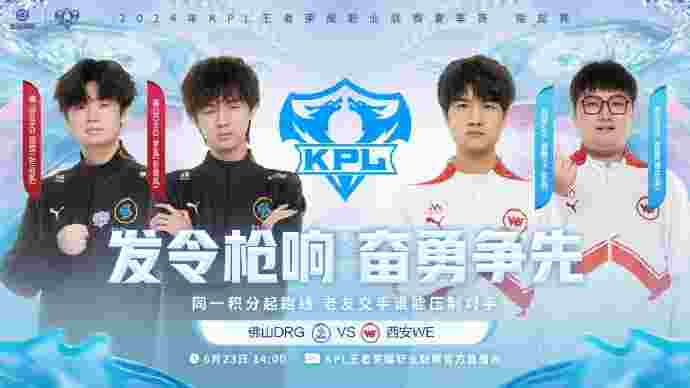 上场零封对手的佛山DRG对战西安WE,两支战队积分相同,谁能先手获胜?上场拿到三连MVP的西安WE.鹏鹏 (卢家鹏)和西安WE.百兽 (房庆友)携手对战老东家,他们能否继续出色发挥,带领队伍拿到胜利?
