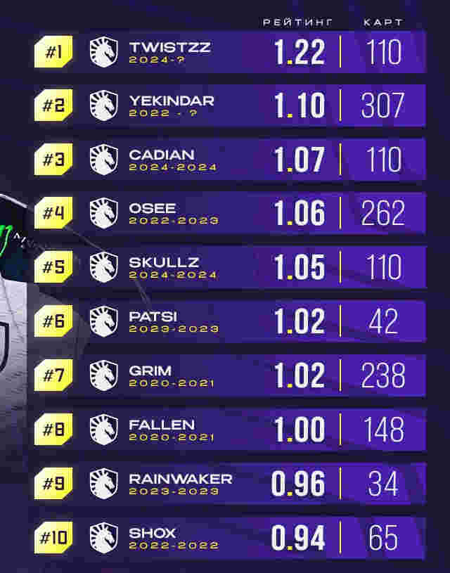 但纵观这些选手,数据最好的依然是Twistzz,他在第二次效力Liquid的过程中,打出了1.22 Rating,排名所有选手第一。