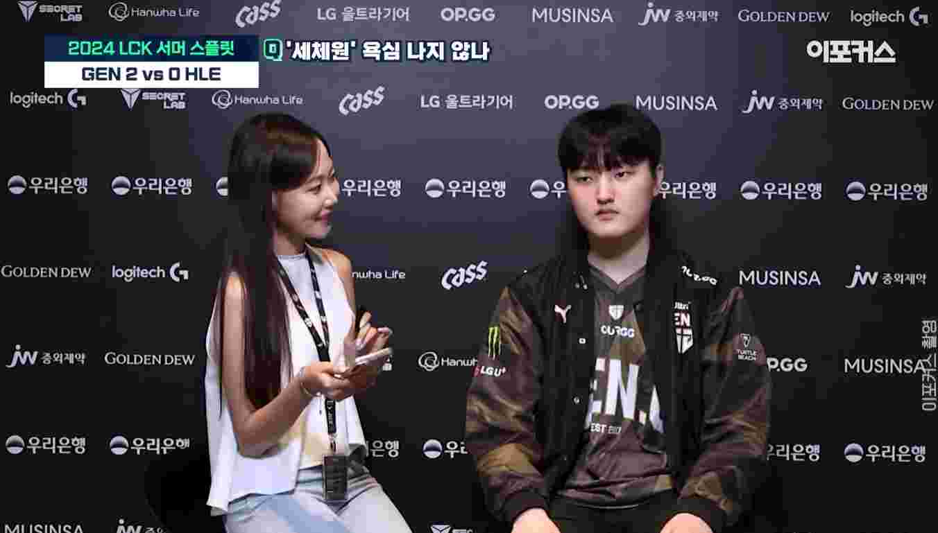 昨日,GEN在零封HLE后,队内AD选手Peyz接受韩媒的视频采访,部分内容如下: