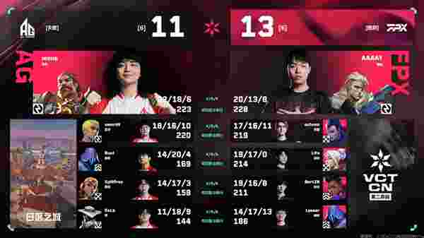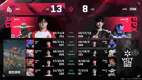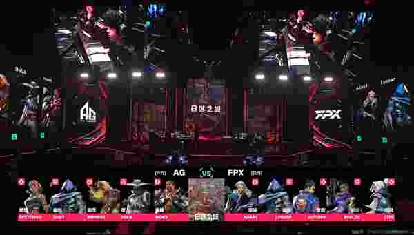 全场比赛的总比分:FPX 2-1 AG,日落之城 (13-11)隐士修所(8-13)亚海悬城(13-7)