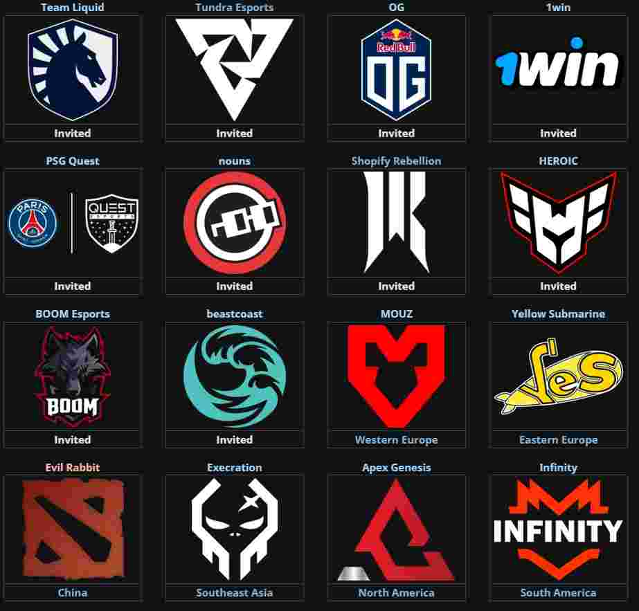 直邀战队阵容强大,包括了Team Liquid、Tundra Esports、OG、1win、PSG.Quest、Nouns、Shopify Rebellion、Heroic、BOOM Esports以及beastcoast。这些战队在各自的赛区中都拥有卓越的表现和雄厚的实力,备受期待。