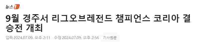 7月9日,韩媒News1发布文章表示,2024年LCK夏季赛总决赛将落地庆尚北道庆州市: