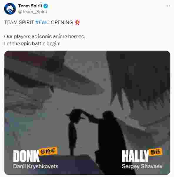 Spirit俱乐部在其官方媒体账号上发布了电竞世界杯出征宣传片,用动漫剪辑形式介绍了该俱乐部各游戏分部参加2024 EWC电竞世界杯的情况。DOTA2、CS、PUBG Mobile等分部的队员们化身为各种动漫中的角色。