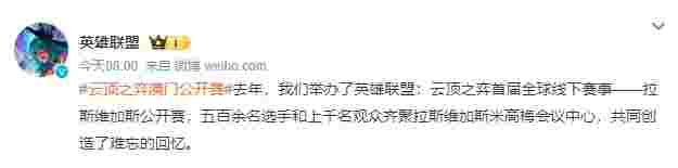 7月15日,英雄联盟官方发文称,2024年的云顶之弈公开赛将前往中国澳门