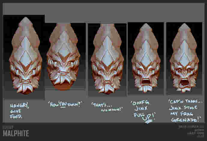 7月17日,英雄联盟官博分享了设计师Jon Buran所发布的奥德赛 墨菲特的早期概念探索图预览——爱来自聪明墨菲特