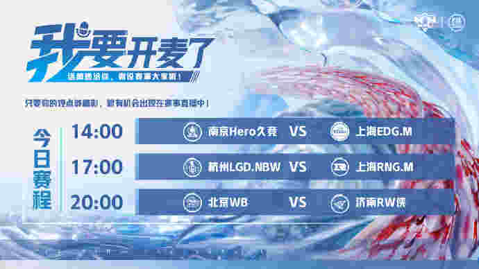 14:00 南京Hero久竞 vs 上海EDG.M(B组,南京)