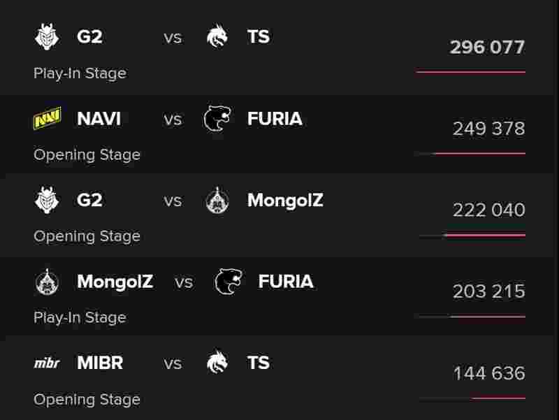 FURIA的比赛出现自2019年以来最低的观看人数。