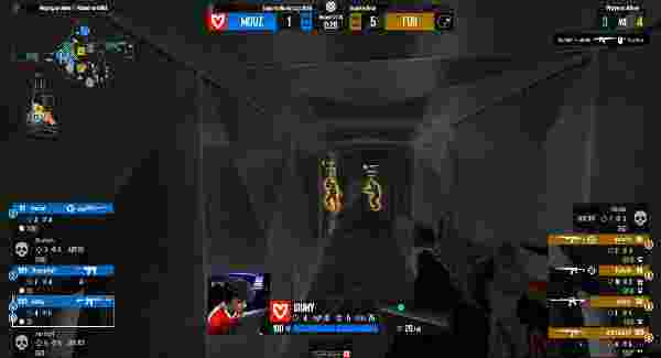 下半场MOUZ来到进攻方,手枪局想要从正门进攻A区,被Skullz挡住攻势后选择转点B区,最后Jimhhpat双杀赢下胜利。次回合FURIA纯e。