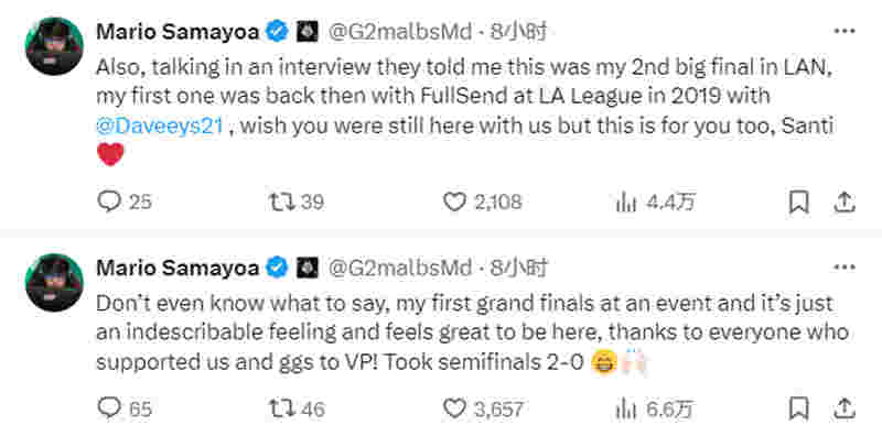 Virtus.pro,昂首挺胸步入决赛,让我们一起看看G2选手们的赛后动态吧!