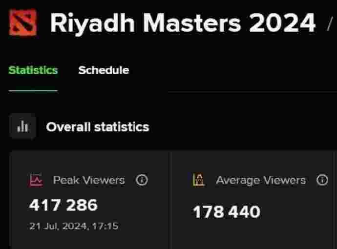 利雅得大师赛的平均观看人数为178,440,比PGL瓦拉几亚130,034的成绩略高
