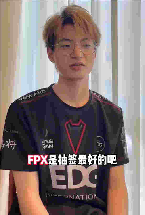 FPX抽签结果最好,TE第二,BLG排第三,然后我们应该是最难的。FPX大家实力比较平均嘛,大家四个队都是冠亚季军,在小组赛就有很强的强度去锻炼。我们因为上一个世界赛一场没赢嘛,所以很多人认为我们不该来。所以我觉得我们这次,我们水平在里面是最垃圾的,最难的。