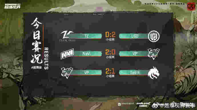 A组NaVi积5分继续领跑,VP、Spirit分列小组二、三名,LGD今日取得一胜积2分排名小组第四,Team Zero一胜难求小组垫底