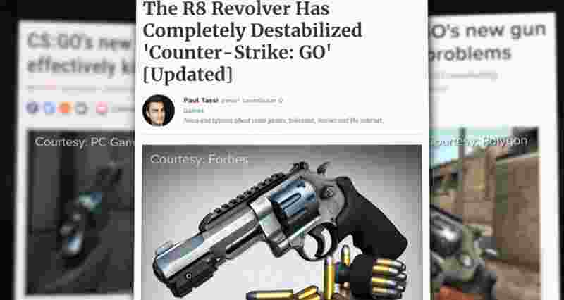 在CSGO早期,V社看到了一个更新武器的机会。也许玩家需要一把新手枪、也许AK和M4用得太多了、也许大家有点审美疲劳了。因此在2015年12月8日,V社为游戏添加了R8左轮手枪,在12月8日之后的48个小时,CS社区领会了R8的巨大威力。