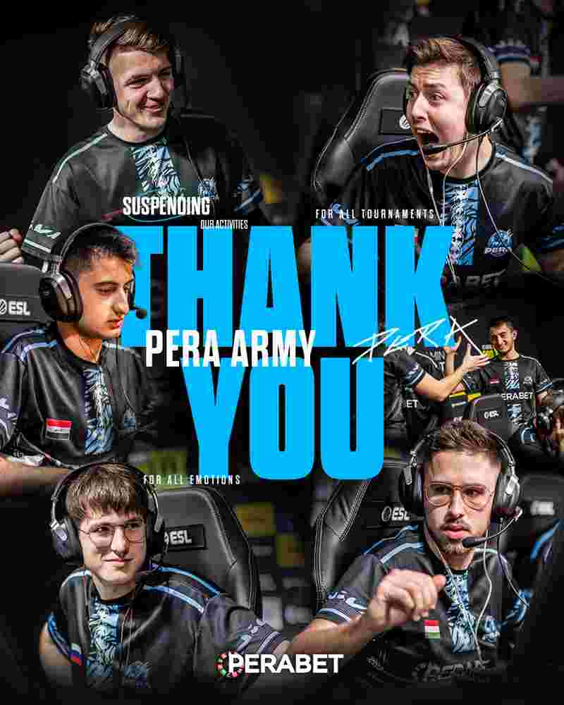 “PERA Esports不幸的宣布结束。曾经与我们并肩作战的每一个人现在都可以自由探索新的机会。我们要感谢所有参与并为我们奋斗的人们。同时也要感谢所有支持我们的朋友。”