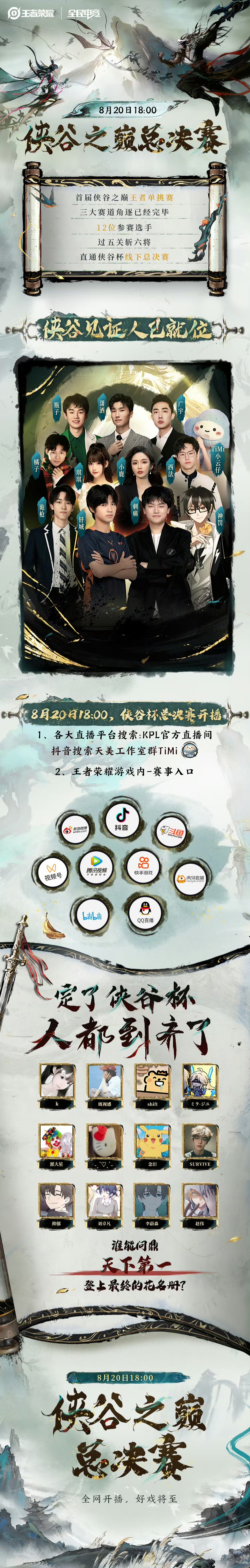 8月20日18:00,一起搬好小板凳,侠谷杯总决赛全网直播,具体上哪能看?戳大图查看详情!