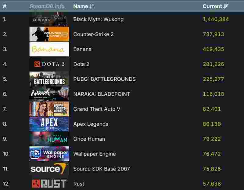 • Steam史上同时在线人数第四,仅次于CS新版本、幻兽帕鲁和PUBG