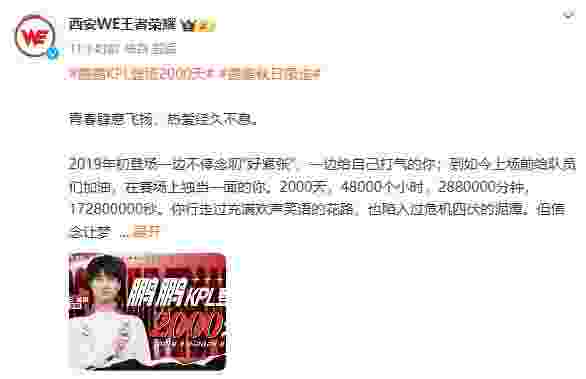 虎扑08月30日讯 鹏鹏KPL登场2000天:你依旧会用热血去掀起波澜,突破桎梏!