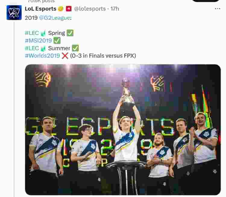 2019年G2战队:2019LEC春季赛冠军,2019MSI冠军,2019LEC夏季赛冠军,S9全球总决赛亚军(0-3不敌FPX)。