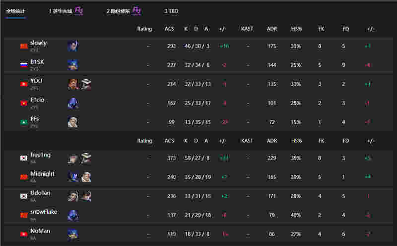 VCT CN联赛晋升赛小组赛阶段,A组第一轮,RA直落两盘击败ZYG,拿下了开门红。图一莲花古城,RA 13:7 ZYG,图二隐世修所,RA 13:9 ZYG。来自RA战队的韩援free1ng选手,拿到了全场最高的58击杀。