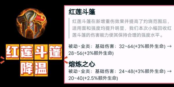 因为坦边英雄的核心装备,红莲斗篷,在S37赛季也进行了降温,这已经是红莲斗篷改版之后,第二次进行伤害降低了,小件装备以及红莲斗篷,伤害降低幅度达到了20%,因此依赖红莲斗篷清线的坦边,很有可能在前期被战边压制。