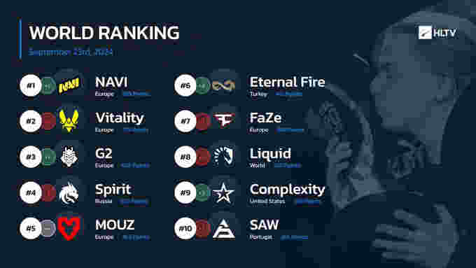 今天HLTV更新了最新一期世界排名。本次世界排名的变动和刚刚结束的EPL S20赛事息息相关。