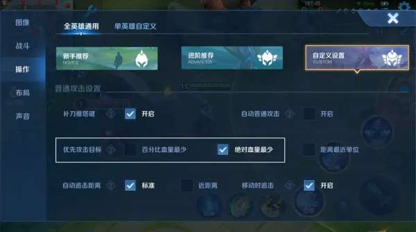 第三个,在优先攻击目标的设置里,勾选“绝对血量最少”时,也可以对技能生效了,这就意味着,以后像亚瑟和赵云的大招,就可以直接收割残血的脆皮了,不会再出现大招给坦克的情况。