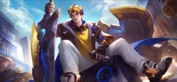 以上是出场动画,整体偏街头潮流风,武器则设计为虎纹图案的剑盾,凸显出亚瑟的力量感。