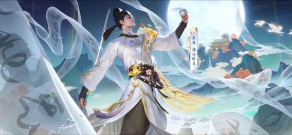 以上则是特效展示,会把山水+白鹭+画卷作为主要元素,让李白在仙境中举杯望月,二技能和大招同样会加入李白的经典诗句。