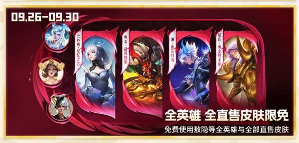 在新赛季更新之后一天,也就是26号,王者荣耀就会开启皮肤免费体验的活动了,所有的直售皮肤,还有全部的英雄,在26号到30号这段时间都可以随便体验。