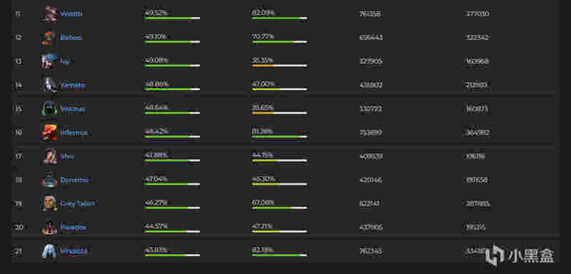 此胜率排行榜为游戏数据网站在9月2日前调取的总角色胜率与选取率排行,在此之后的胜率排行暂未发出。