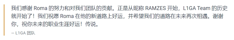 近日,L1GA Team在官方社交媒体上宣布宣布RAMZES666离开其Dota 2战队。