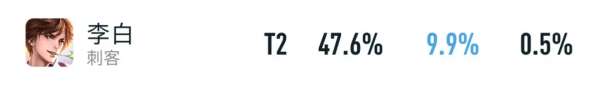 目前,仅有李白这位刺客,表现还能看得过去,他的巅峰赛胜率虽然仅有47.6%,但出场率却高达9.9%,算是刺客的“领头羊”了。