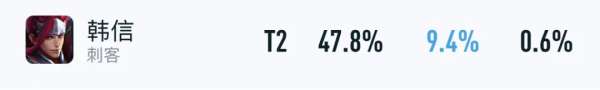 此外,上个赛季表现比较亮眼的肉装韩信,在S37赛季里也可以继续玩,只不过,被调整后的他,控制能力已经远不如以前了,所以,韩信的巅峰赛胜率,才会仅有47.8%,强度处于T1~T2之间。