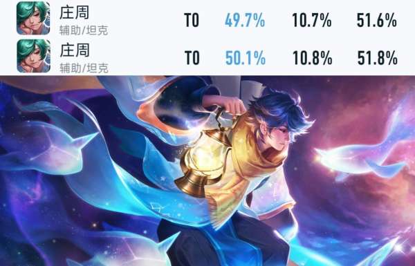 四大硬辅由于基础回血速度增加,全分段胜率都出现了上涨的情况,其中盾山的全分段胜率已从46.1%上涨至46.7%,太乙真人的全分段胜率已从46.7%上涨至47.4%;钟馗的全分段胜率已从49.3%上涨至49.8%;庄周的全分段胜率已从49.7%上涨至50.1%。