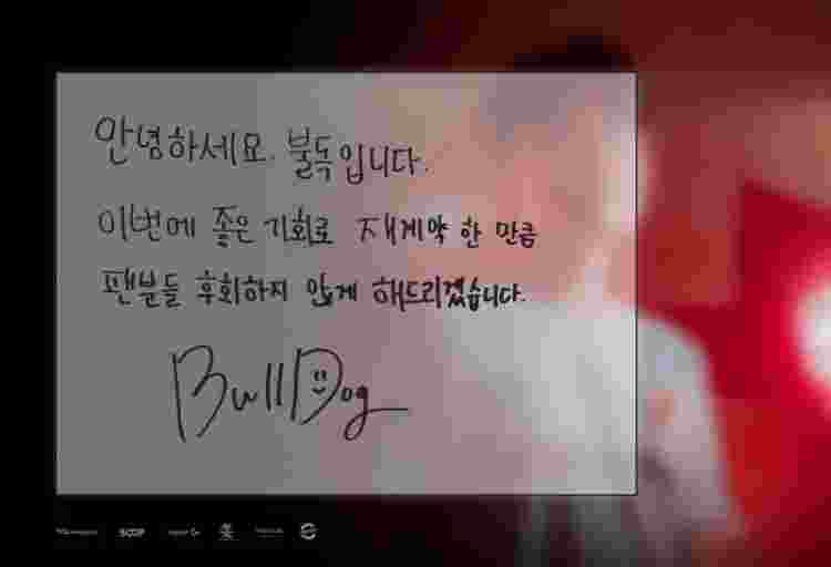 BuLLDoG选手手写信如下:大家好,我是BuLLDoG。这次因好的机会和KDF续约了,我会让粉丝们无悔的。