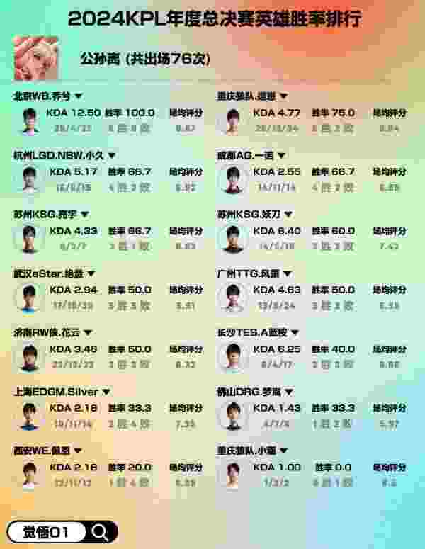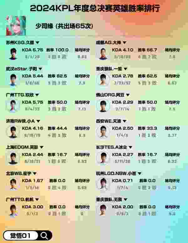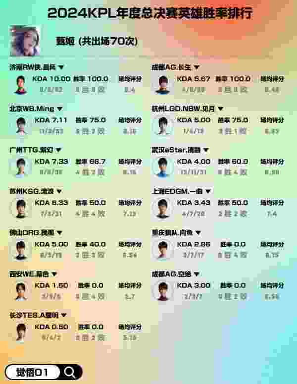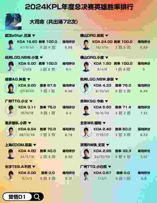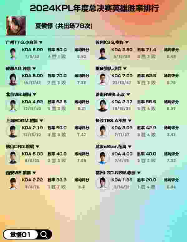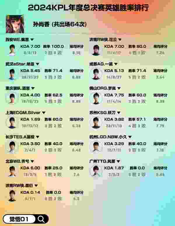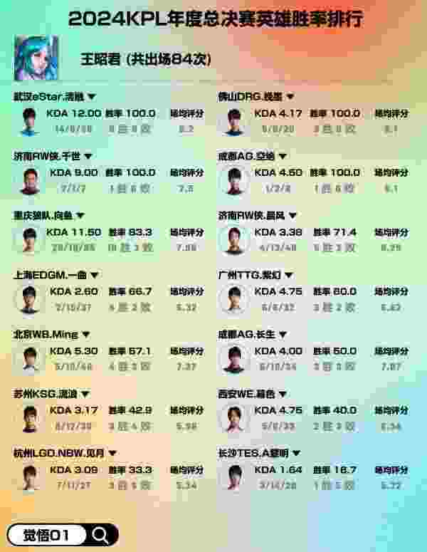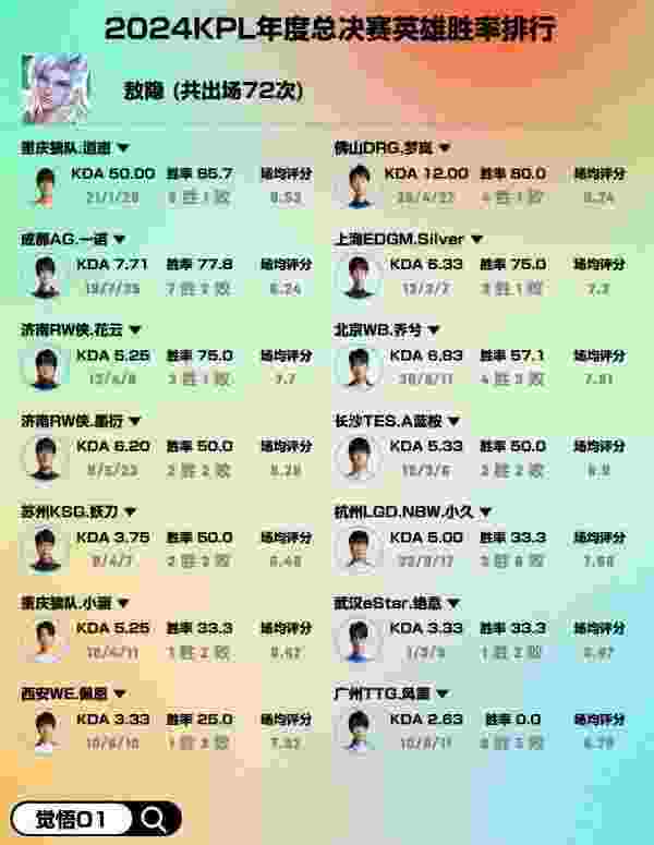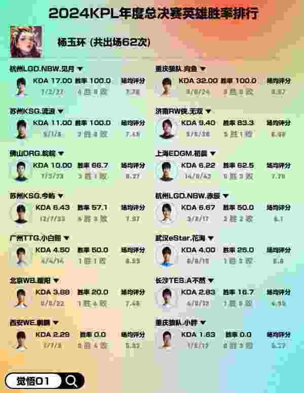 年总出场大于等于50次英雄胜率排行,你怎么看?