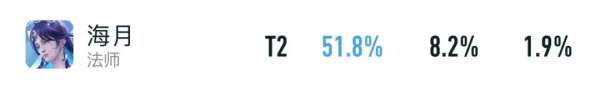 以上则是海月目前的顶端局数据,51.8%胜率+10.1%BP率,还是比较亮眼的,越往高分段走,她的优先级也会越来越高。