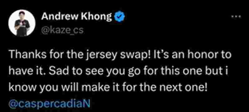 kaze:“感谢你与我交换队服!我很荣幸能拥有它。很遗憾看到你这次无缘Major,但我知道你会在下次卷土重来!”