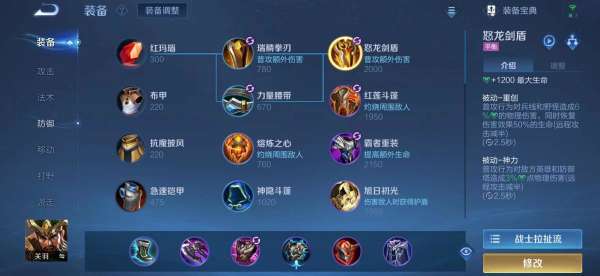 关羽新增边走边A的机制,前期关羽可以出攻速鞋,度过全期后更换韧性鞋,毕竟关羽还是怕控制。其他的装备则没有实质性的变化,依旧是爆裂、黑切、冰霜冲击、魔女。如果关羽玩家注重攻击,后面可以补充碎星锤,有了双穿,关羽绕后可以切掉双C。当然,你也可以考虑怒龙剑盾,普攻对兵线和英雄以及防御塔都能造成额外的伤害。但你要清楚,关羽的普攻不是他的核心技能,新机制只是锦上添花罢了。