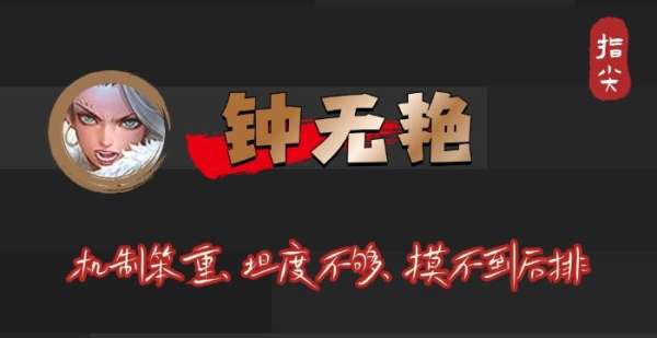 理论上来讲,钟无艳一套技能的AD加成高的离谱,因此脆皮可能触之即残,但问题是,她的技能都是直来直去的,在有质量的对局中,其实是不太好摸到后排的,即便摸到了,不稳定的控制效果可能也起不到该有的作用。