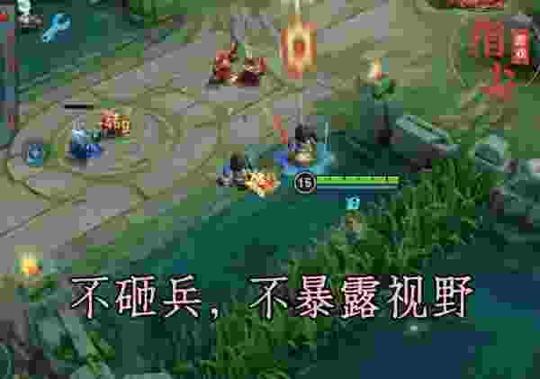 这个藏视野除了利用好小地图外,还有清兵时的视野,米莱狄可以做到不露头清兵,1技能不用,2技能丢到兵线附近但不要砸到兵线,自己在兵线视野外或者草丛,这样在敌方的地图上是见不到你的,除非拖动地图看到了机器人。