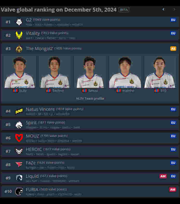 MOUZ,他们的Valve积分来到了世界第三。